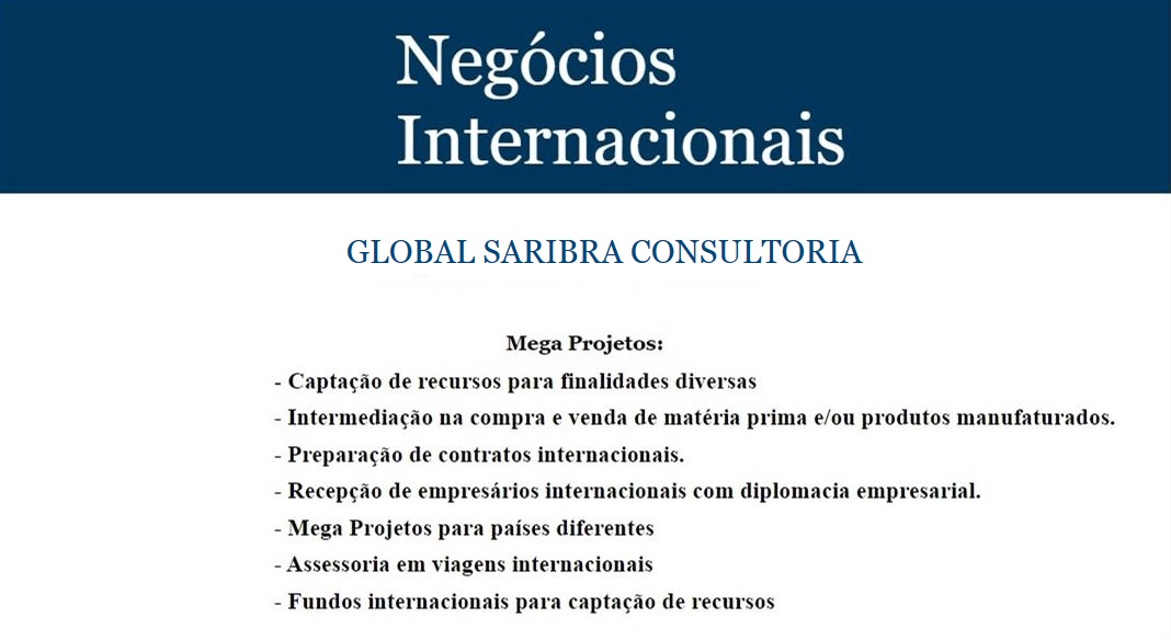 A Global SARIBRA realiza assessoria e consultoria para empresas internacionais para negócios no Brasil. Apoio de documentação, abertura de empresa e filial através dos parceiros. Ainda conseguimos terrenos para construçõao de fábricas e cuidamos dos impostos.