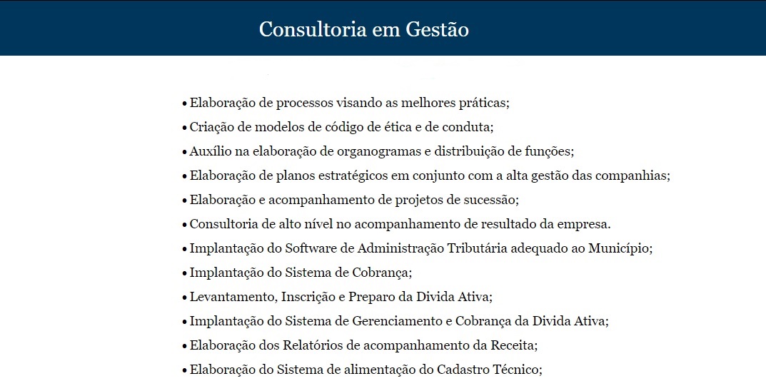 Algumas das atividades que prestamos na área de consultoria em gestão Pública.